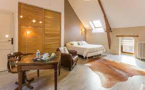 Notre Chambre campagne conçu avec Lit double en 160 , un bureau pour le télé travail, un coin lecture avec un fauteuil et dressing dans le seul but de se sentir comme à la maison.