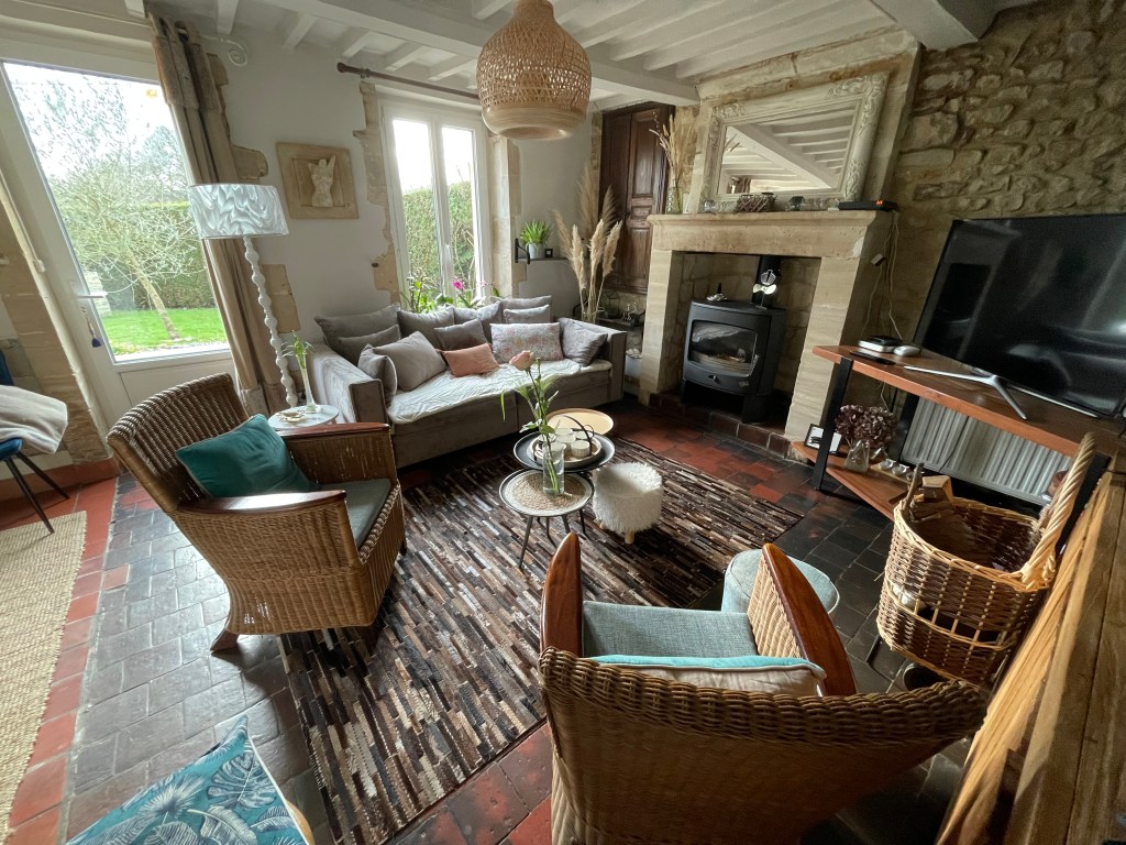 Un salon à disposition de nos hôtes pour un moment de détente et de repos avec TV, au coin du feu l’hiver, comme chez soi.
