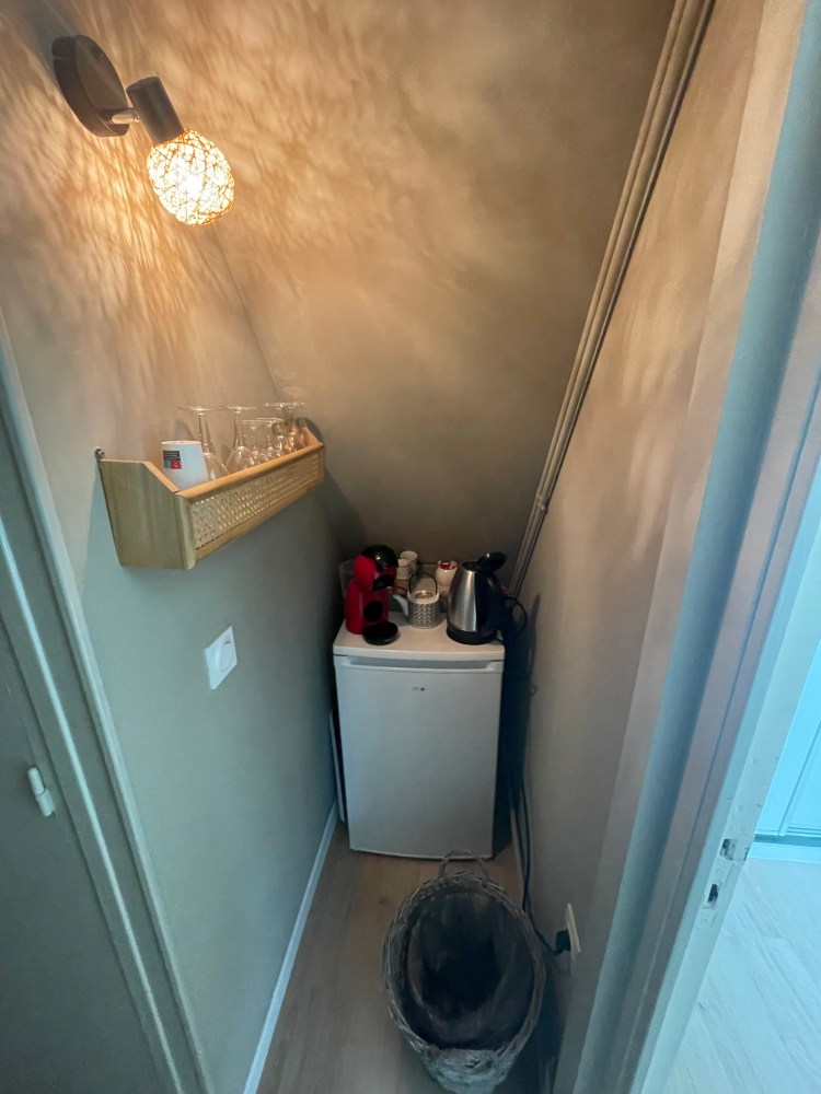 Envie d’une pause, prenez un café ou bien un thé tranquille dans votre chambre avec la mise à disposition d’une bouilloire, machine à café Dolce Gusto à l’étage ainsi qu’un frigo.