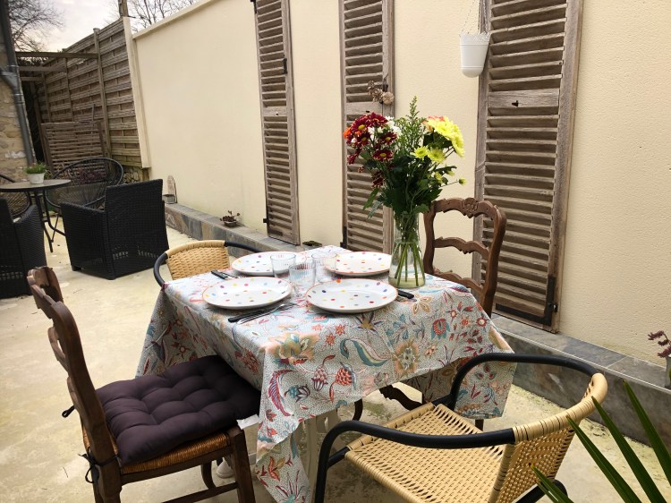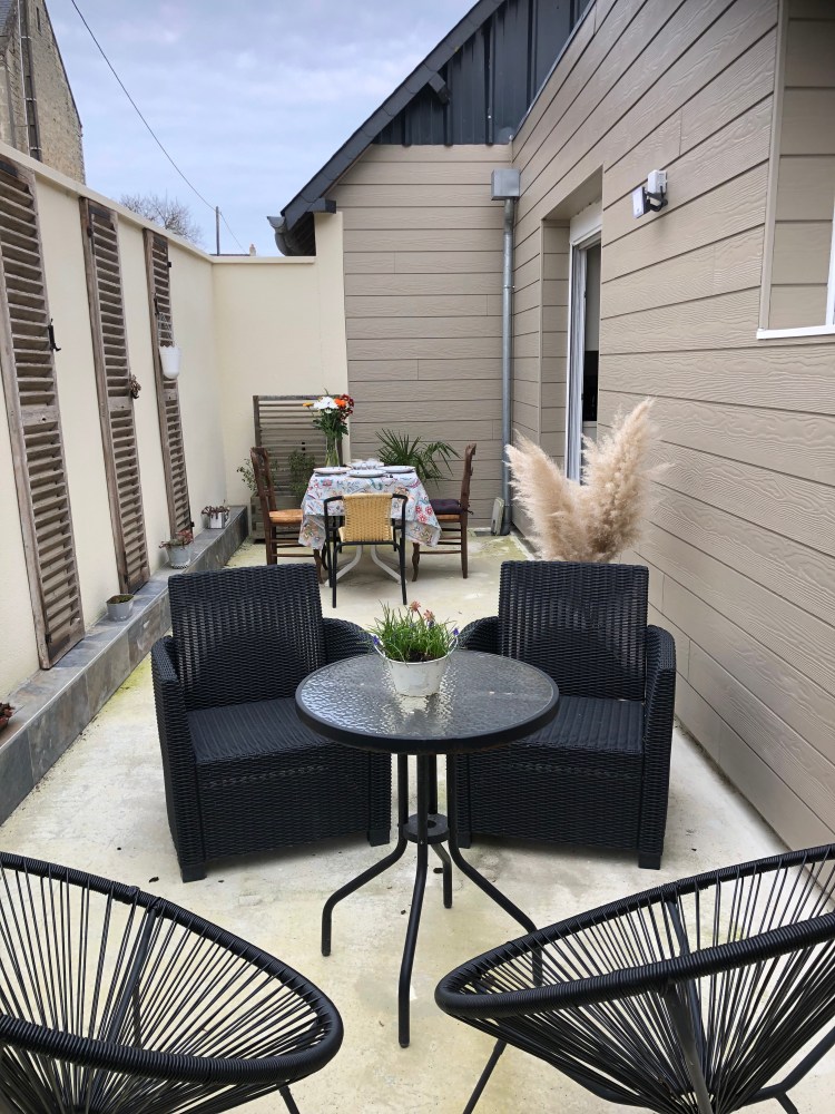 A l’extérieur une terrasse privative clos de mur avec salon de jardin, table et chaises, barbecue pour une détente garantie à la campagne.